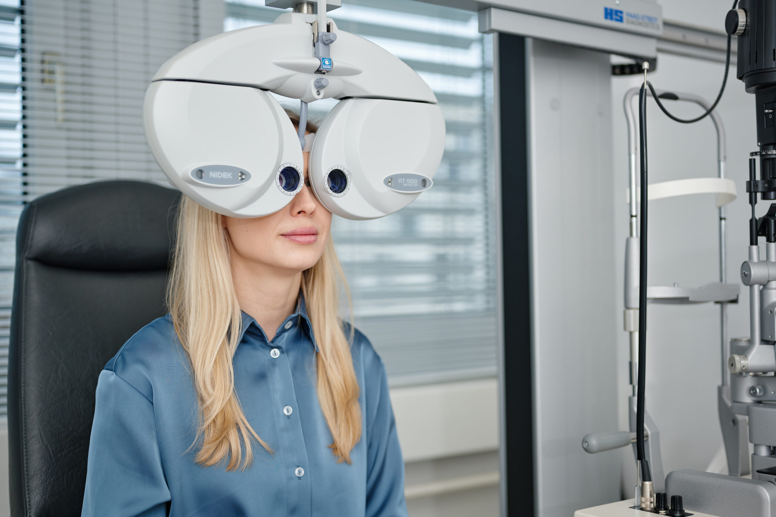 Der Phoropter ist in der Augenheilkunde ein augenoptisches Gerät zum Messen der subjektiven Refraktion, anders ausgedrückt der Sehstärke – die